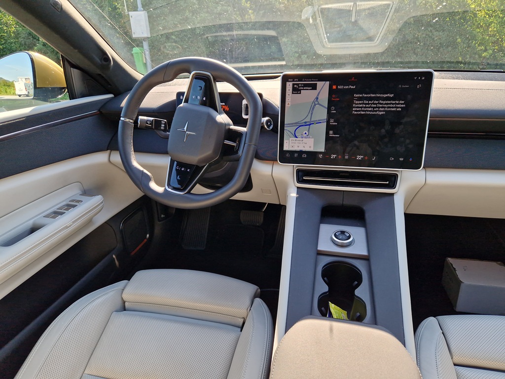 Der Innenraum sehr elegant und extrem aufgeräumt!. Das Display im Cockpit ist hervorragend gestaltet, liefert alle wichtigen Informationen klar und strukturiert, während auch das zentrale Infotainment-Display keine Wünsche offen lässt. Die Menüführung ist intuitiv, die Reaktionsgeschwindigkeit beeindruckend. Der restliche Innenraum besticht durch eine Schlichtheit, die eine gewisse Noblesse ausstrahlt. Sehr wenige Knöpfe und Bedienelemente, da die meisten Funktionen über den großen Touch Bildschirm bedient werden. Wenn man damit zurechtkommt, wird man den Polestar lieben.